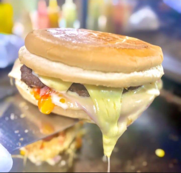 PÃO ARGOLA, HAMBÚRGUER ARTESANAL 140 GRAMAS, MUSSARELA, PRESUNTO, TOMATE , MAIONESE, MILHO E MOLHO FAMILLY´S.