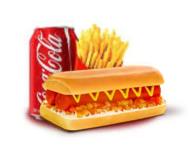 2 Dog simples + 2 batatas + 1 coca cola 600ml