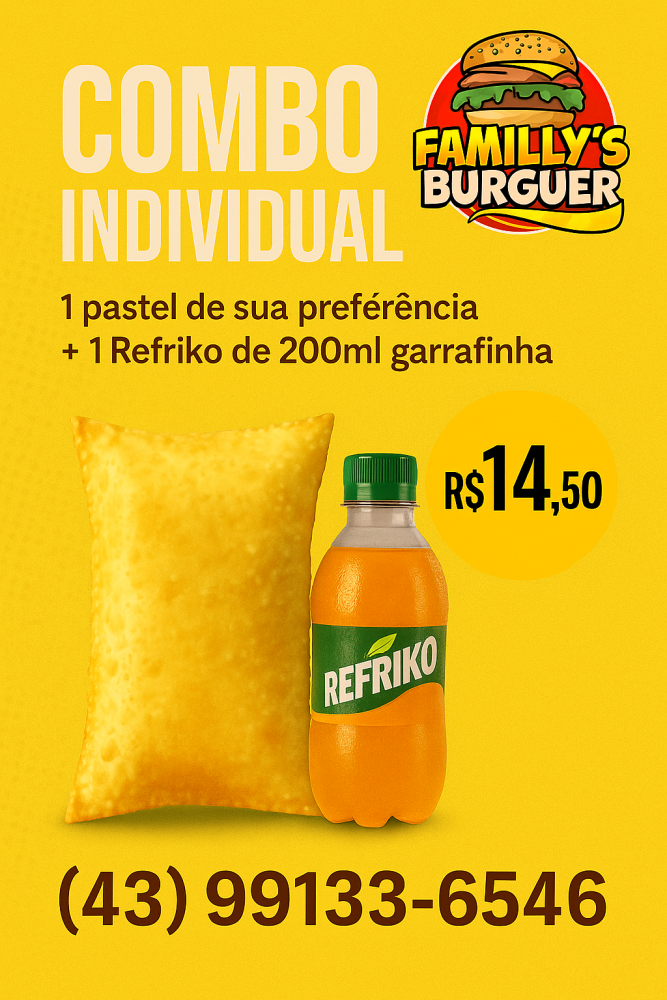 1 PASTEL DE SUA PREFERENCIA + 1 REFRIKO 200ML